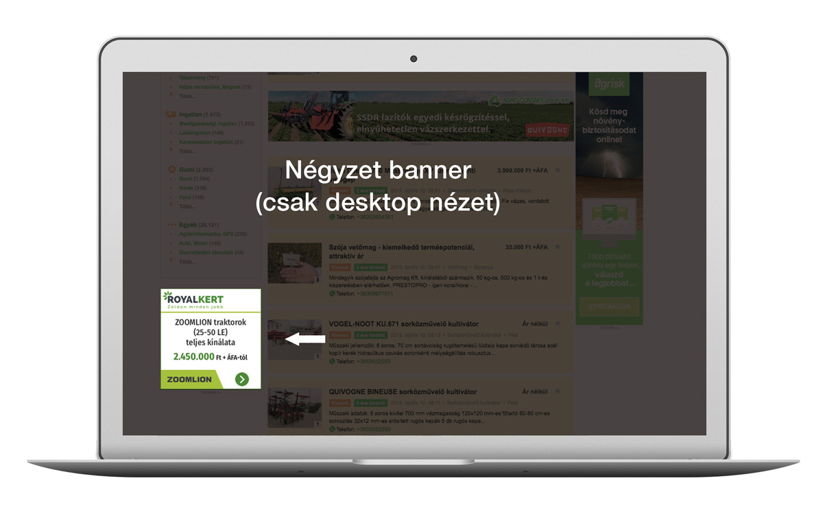 Megjelenési lehetőségek:AV alapon történő megjelenés a Piactér rovat ajánlatokon belül (Multiscreen)